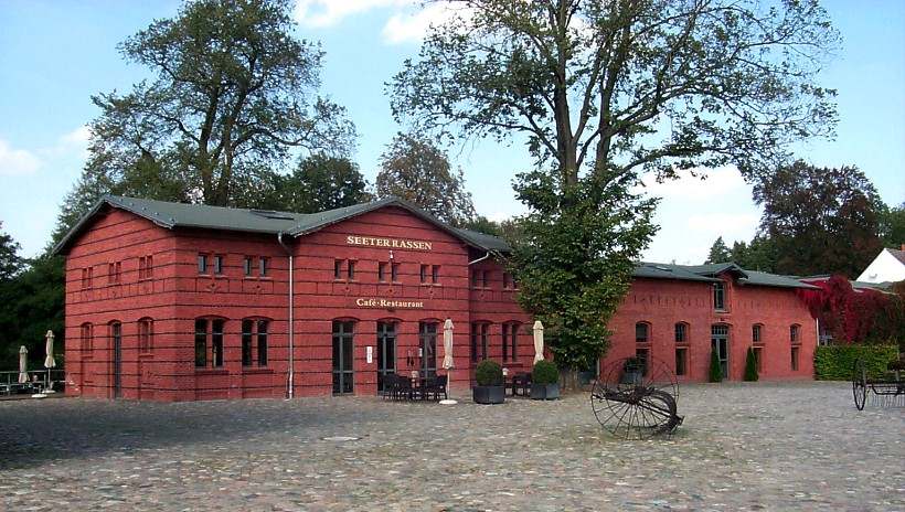 Gustav Seidel (* 1803; † 1884) und Louis Köppen (Lebensdaten nicht bekannt) geschaffen. Sie sind im Museum Reinickendorf, Alt-Hermsdorf 35 zu besichtigen und wurden Mitte 1990 vorübergehend im Neubau des Rathauses Berlin-Reinickendorf - aus dieser Sicht hinter dem historischen Altbau - als Leihgabe im Foyer ausgestellt. ******************************************************************************************************************************* Im Hintergrund des Borsig-Tores steht der Borsigturm, das ehem. Hauptverwaltungsgebäude der Firma A. Borsig. Er zählt zu der Architektur des "Backsteinexpressionismus" der 1920er Jahre. Mit einer Grundfläche von 20 mal 16 Meter, einer Höhe von 65 Meter und 12 Stockwerken, war er der erste Industrie-Hochbau in Berlin und ein weithin sichtbares architektonisches Wahrzeichen von Tegel. Die beengten Platzverhältnisse auf dem Werksgelände haben den Anstoß zum Turmbau gegeben. Außerdem diente er anfangs auch als "Wasserturm", in der 9. Etage wurde ein Wasserbehälter eingebaut. Der Turm entstand als Stahlskelettbau, dessen Fassaden aus Backstein gemauert sind. Unter Beteiligung des Architekten Eugen Georg Schmohl (* 1880; † 1926) - auch Architekt des Ullsteinhauses in Tempelhof - wurde im September 1922 der Borsigturm durch die eigene Bauabteilung der Fa. A. Borsig begonnen und im Frühjahr 1924 abgeschlossen. Im Turm waren die Räume der Betriebsdirektion, Konferenzzimmer, Betriebskalkulation, Maschinen- und Betriebsabteilung, Betriebsbuchhaltung und Vortragssaal untergebracht. ![]() Der Blick vom Dach des BORSIG-Turms zum historischen BORSIG-Tor im Sept. 2012, bei einer offiziellen Turmbesichtigung, die sonst leider nicht möglich ist. Das neogotische, ehemalige Borsig-Verwaltungsgebäude (links) mit kaufm. und techn. Büros, die einst teilweise miteinander durch ein "Druckluft-Rohrpostsystem" verbunden waren. Heute ein Ärztezentrum und das ehemalige Borsig-Kasinogebäude und Lohnbüro (rechts), heute eine Dienststelle der Polizei Direktion 1 - Abschnitt 11. Der Abschnitt 11 umfasst die Ortsteile Heiligensee, Konradshöhe, Tegel, Borsigwalde sowie den westlichen Teil des Ortsteils Reinickendorf. Im Dienstgebäude am denkmalgeschützten BORSIG-Tor befindet sich neben der Polizei auch das Bürgeramt Tegel. ***************************************************************************************************************************************** Heute ist das BORSIG-Tor die Durchfahrt zum modernen Einkaufszentrum - in den ehrwürdigen BORSIG-Hallen - bzw. zu Firmen, die sich auf dem ehemaligen BORSIG-Gelände etabliert haben. Wo einst Tausende von Arbeitern schwere Lokomotiven, Dampfmaschinen, Dampfturbinen, Verdichter, große Kolbenkompressoren sowie Schiffsdieselmotoren und Kessel für Kraftwerke bauten, kaufen heute Menschen aus dem gesamten Berliner Norden und dem Umland in den Hallen am Borsigturm ein. ***************************************************************************************************************************************** Deutlich sichtbares Zeichen des Erfolges und des Firmenprestiges war in den 1920er Jahren des vergangenen Jahrhunderts das erste Berliner Hochhaus, der BORSIGTURM. ![]() Die eiserne Turmspitze auf dem Dach des BORSIG-Hochhauses. ![]() Die Sicht zur ehemaligen Magazinhalle - an der Egellsstraße - der Fa. Borsig im Vordergrund. Oben, über der Baumgruppe, kann man die Start- und Landebahn des, in ca. 6 km Entfernung, ehemaligen (bis 8. Nov. 2020) innerstädtischen Flughafens Tegel erkennen. ![]() Die Restgebäude des BORSIG-Imperiums und -Geländes mit dem neuen Hauptgebäude an der Egellsstraße (links) und den Betriebshallen des Apparate- und Anlagenbaus. Im Vordergrund die durchlaufende Brüstung der Abdeckung des Dachkantenabschlusses mit Blitzableiter vom Borsig-Turm, rechts der Blick zu den ehemaligen Hallen des Borsig-Maschinenbaus, jetzt zu MAN Energy Solutions gehörend. ![]() Aussicht zu den übrig gebliebenen BORSIG-Fertigungshallen (links) und zum Tegeler See mit dem BORSIG-Binnenhafen an der Havel-Oder-Wasserstraße (HOW). Neben dem Borsig-Hochhaus wurden Teile der ursprünglichen Werkshallen, die auch unter Denkmalschutz stehen, in den Gewerbepark integriert. Ausblick über die Dächer der alten und neuen Gebäude und Mieter, z.B. Borsig WESTWERK, im Vordergrund des Fotos, bzw. zum, nun auch schon wieder, ehemaligen Herlitz-Gewerbepark (im Hintergrund links) auf dem ehemaligen Borsig-Werksgelände zum Tegeler Hafen (im Hintergrund rechts). Die neuen Mieter benutzen teilweise die unter Denkmalschutz stehenden, umgebauten alten Borsig-Werkshallen. Im April 2002 stellten Herlitz AG, Herlitz PBS AG, Diplomat Schreibgeräte GmbH und Susy Card GmbH & Co. KG Insolvenzantrag. Neue Firmierung jetzt unter "Pelikan Group GmbH" mit Geschäftsadresse in der Stadt Falkensee / Landkreis Havelland in Brandenburg. Turmblick zum "alten Tegel-Center" und im Hintergrund zum Sendeturm an der Invalidensiedlung in Frohnau. Der kleine Fachwerkturm im Frohnauer Forst mit 117,5 Meter Höhe ist das "Überbleibsel des Kalten Krieges", der West-Berliner Richtfunkstrecke Berlin-Frohnau zum Richfunkmast Gartow II auf dem Höhbeck im Landkreis Lüchow-Dannenberg, im Osten Niedersachsens. Er blieb nach der Sprengung des großen Gitterturm-Sendemastes (358 m Höhe) am 8. Febr. 2009 stehen, da über ihn jetzt die Mobilfunk- und Bündelfunkanwendungen abgewickelt werden. Blick vom Borsig-Turm über die Berliner Straße und der dort neu errichteten Bürohäuser, nach Berlin-Mitte (City-Ost), zum Fernsehturm (Telespargel) am Alexanderplatz (Alex). *************************************************************************************************************************************** Die ehemaligen, teilweise heute noch vorhandenen Logistikanschlüsse auf und an dem früheren Borsig-Werksgelände am Tegeler See: Inaktiver "Bahnanschluss" bis auf das Werksgelände - leider stillgelegt, dann der